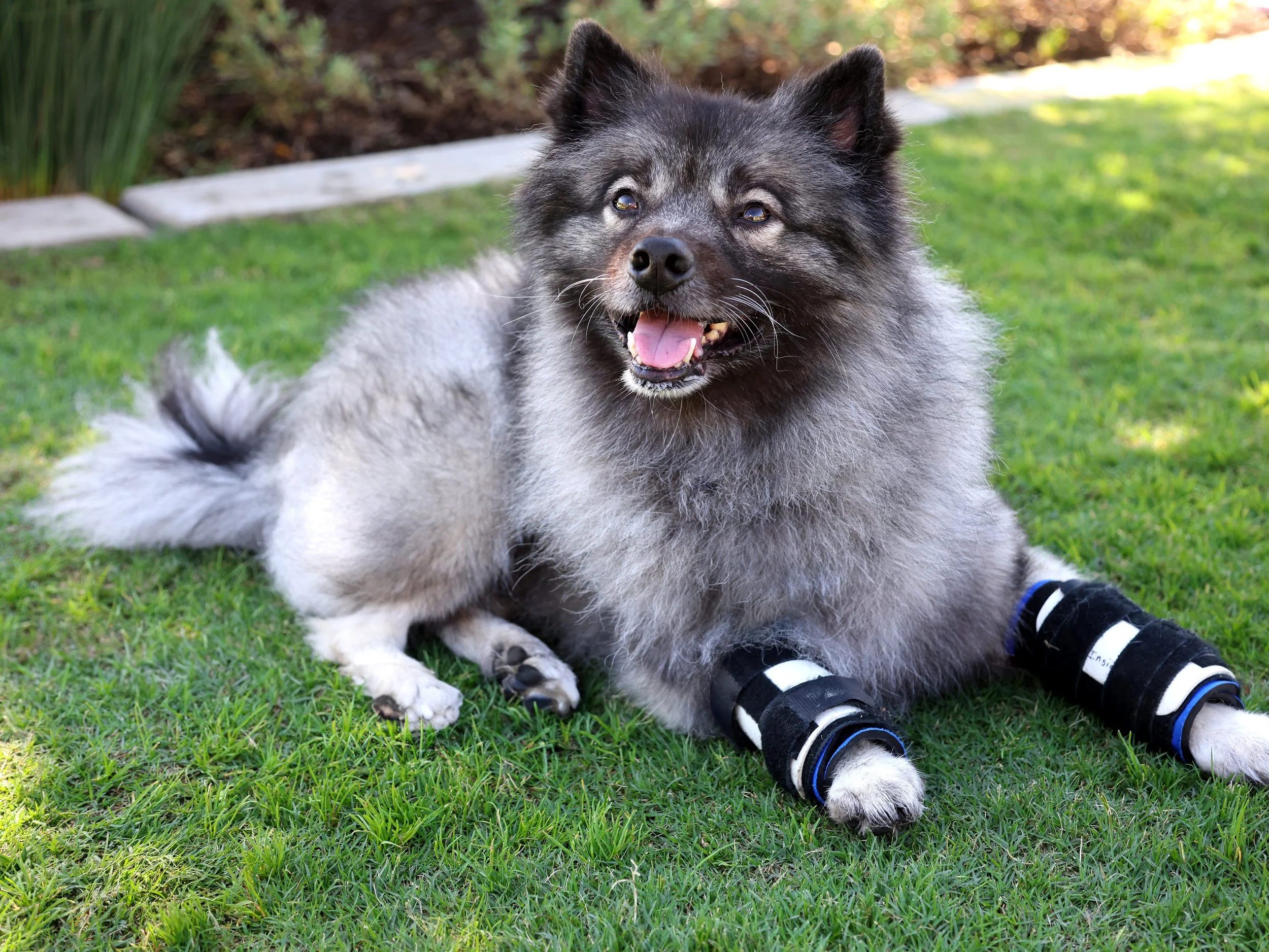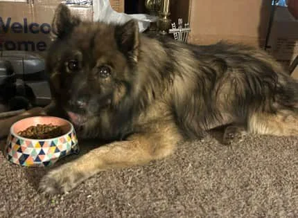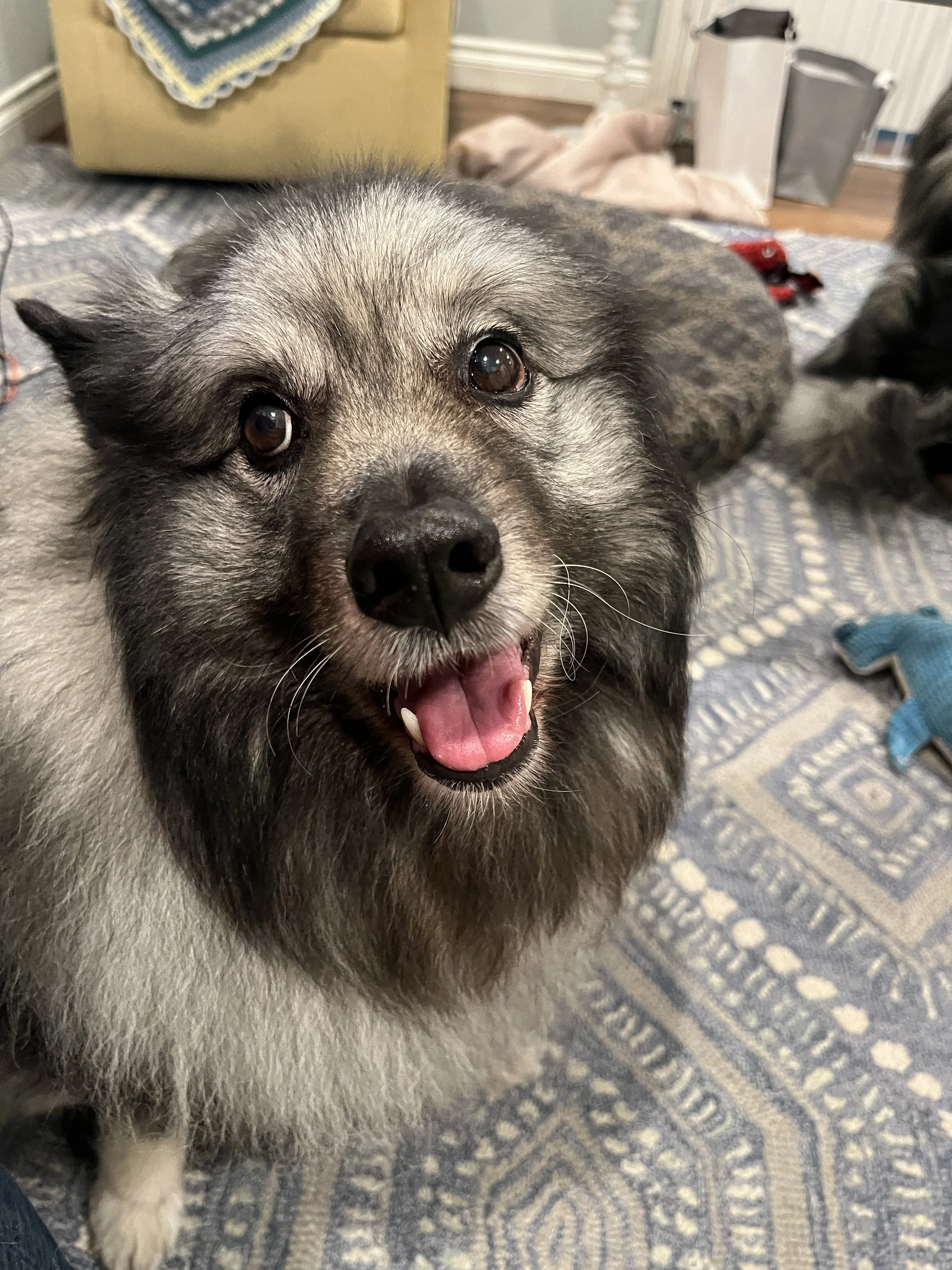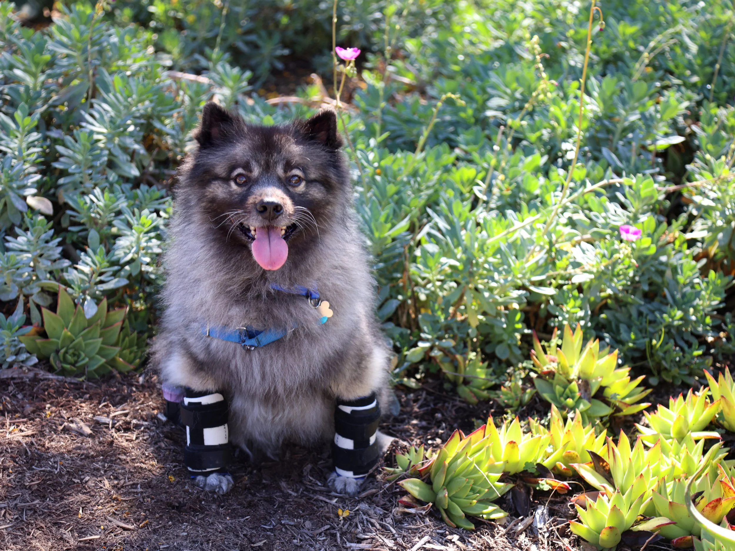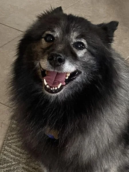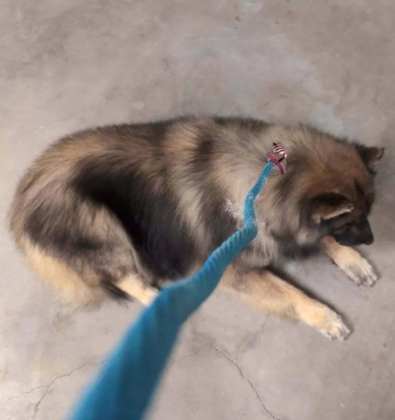 Southern California Keeshond Rescue saved Luna from an animal shelter in August 2024 after a ten-day owner hold. A vet exam revealed a possible emerging pyometra, and spay surgery was scheduled. However, just four days later, Luna became lethargic and was rushed to the emergency hospital, where she was diagnosed with severe Mycoplasma bacterial pneumonia. She spent two days in intensive care with oxygen support.