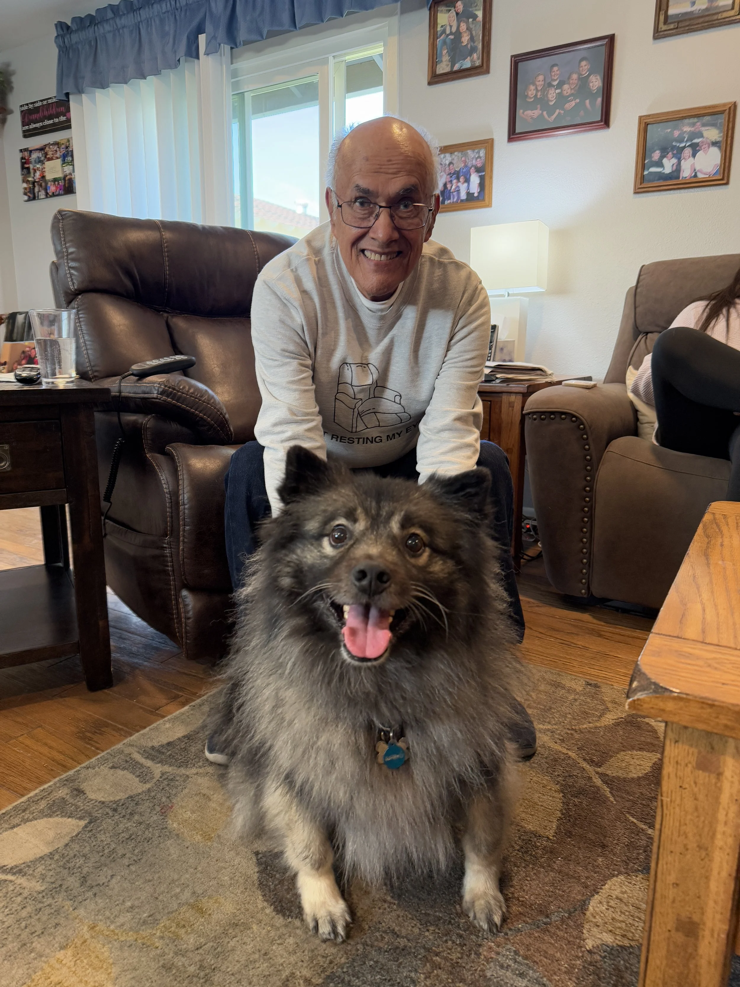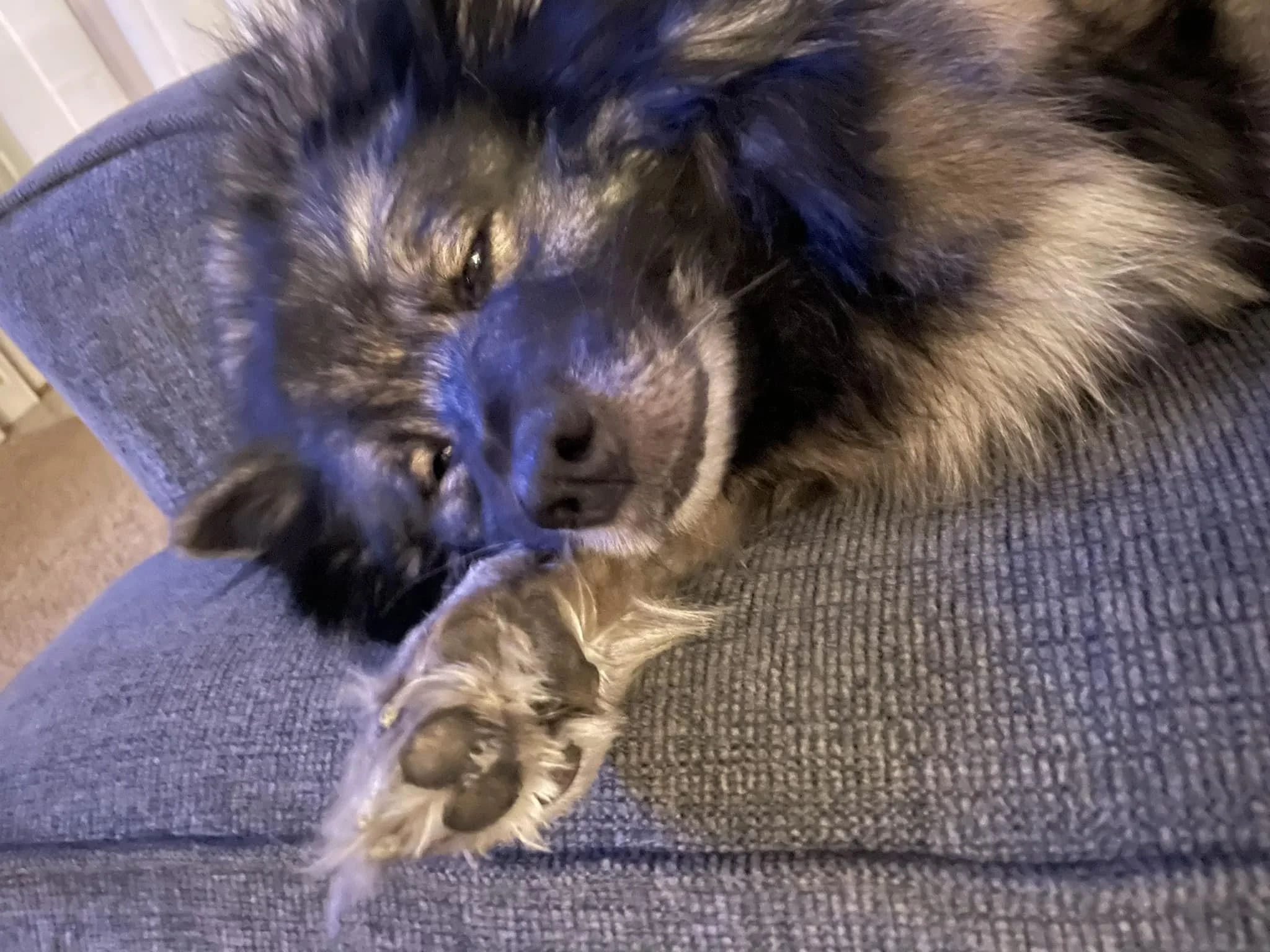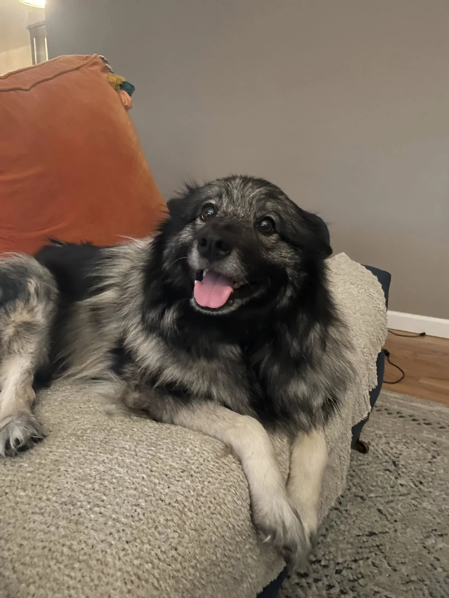 Southern California Keeshond Rescue saved Luna from an animal shelter in August 2024 after a ten-day owner hold. A vet exam revealed a possible emerging pyometra, and spay surgery was scheduled. However, just four days later, Luna became lethargic and was rushed to the emergency hospital, where she was diagnosed with severe Mycoplasma bacterial pneumonia. She spent two days in intensive care with oxygen support.